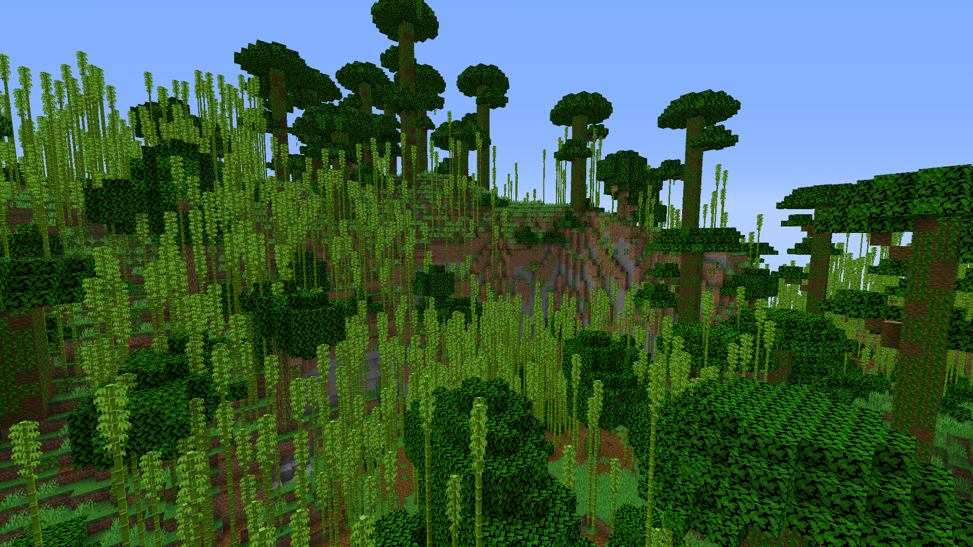 竹林がジャングルバイオームの特定の区域を上書きする。
