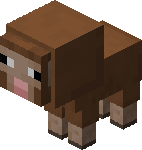 | 当初は、羊毛がない状態で出現していたが、これは後のバージョンで修正された。攻撃した際に灰色の羊毛をドロップするようになり、キノコはドロップしなくなった。また、草を食べなくなった。 | |||||