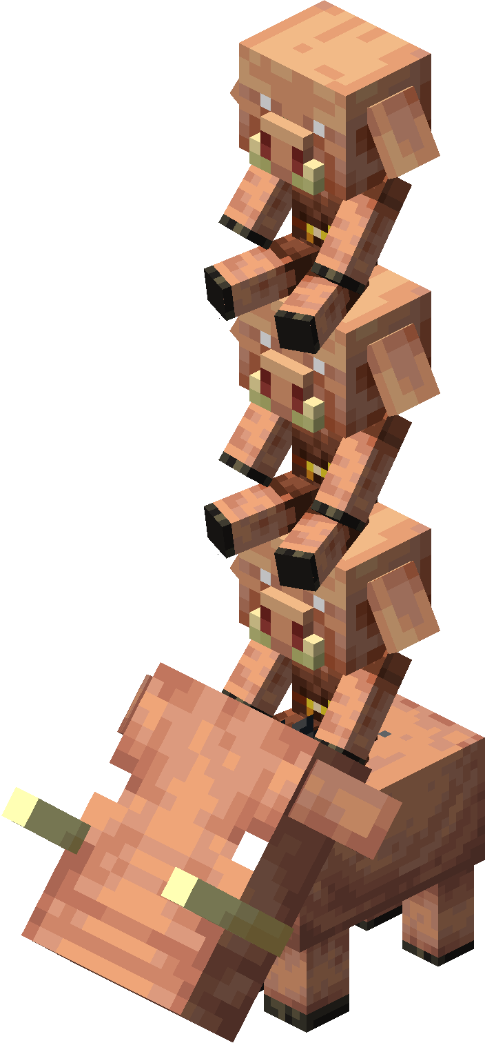 - 大人ピグリンは絶対に他のエンティティに乗れない。何かに乗った状態で召喚された場合即座に降りる。