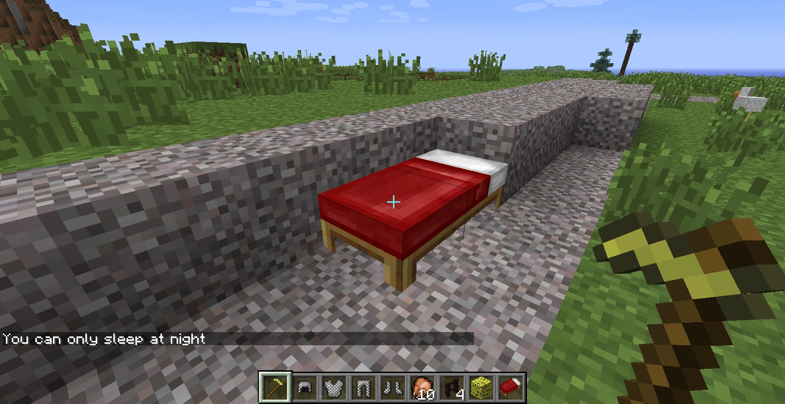 | 1.11 | 16w32a | The messages "You can only sleep at night", "You may not rest now, there are monsters nearby", and "This bed is occupied" will now appear on top of the hotbar, the place that the message "Press **** to dismount" will also appear when you're riding a mob. | |||