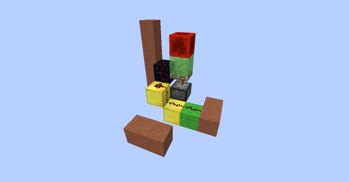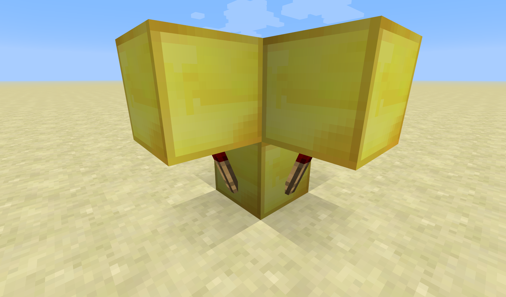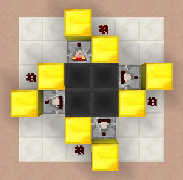 - レッドストーンダスト(ピストンは動作するが、ダストやリピーターはクロックを妨害する可能性が高い)の「十字」のブロック。