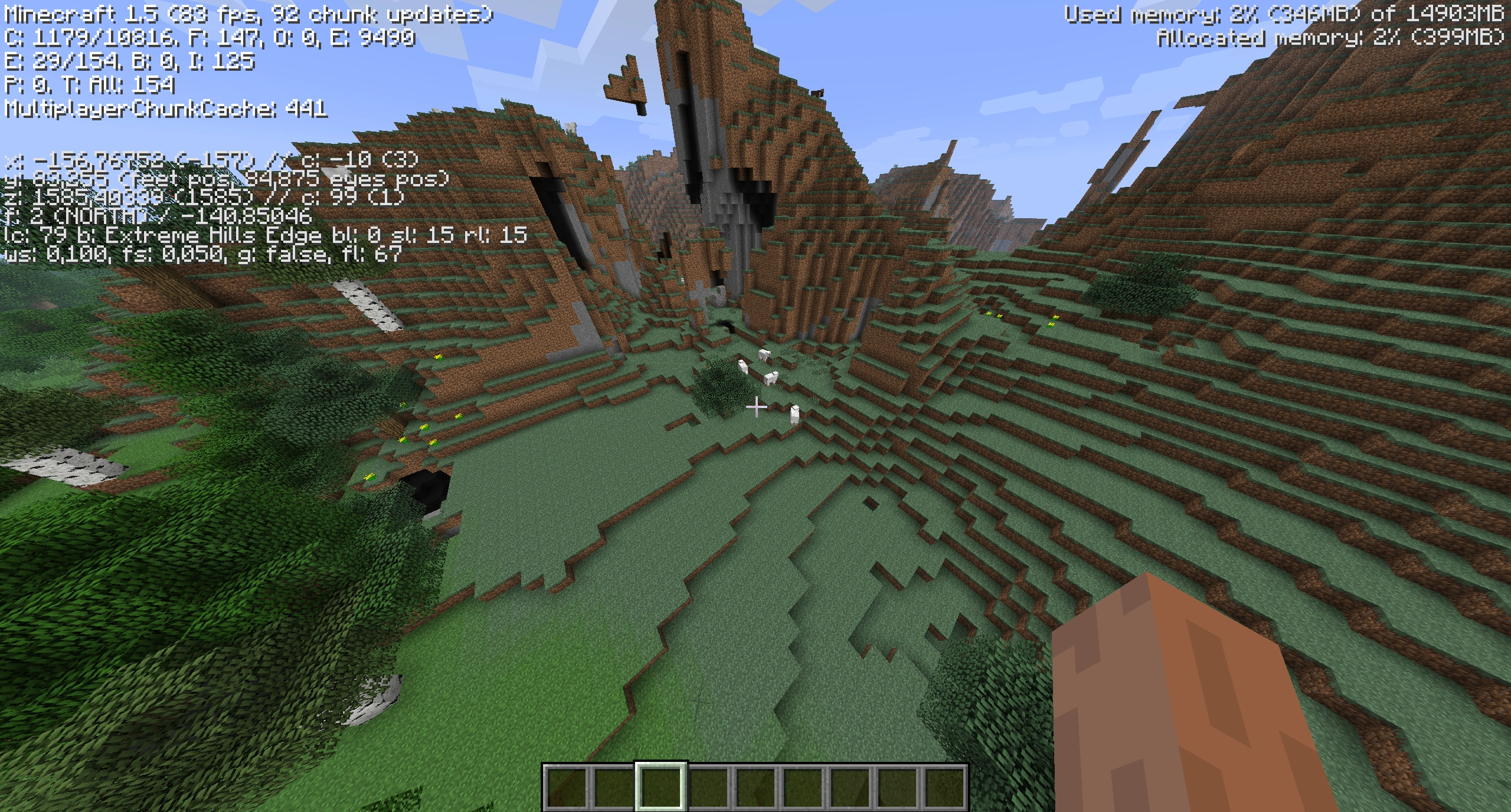 | 極限の丘陵バイオームはにはマツの木しか生成されなかった(オークの木はなし)。木は森のある山でのみみられた。 | |||||