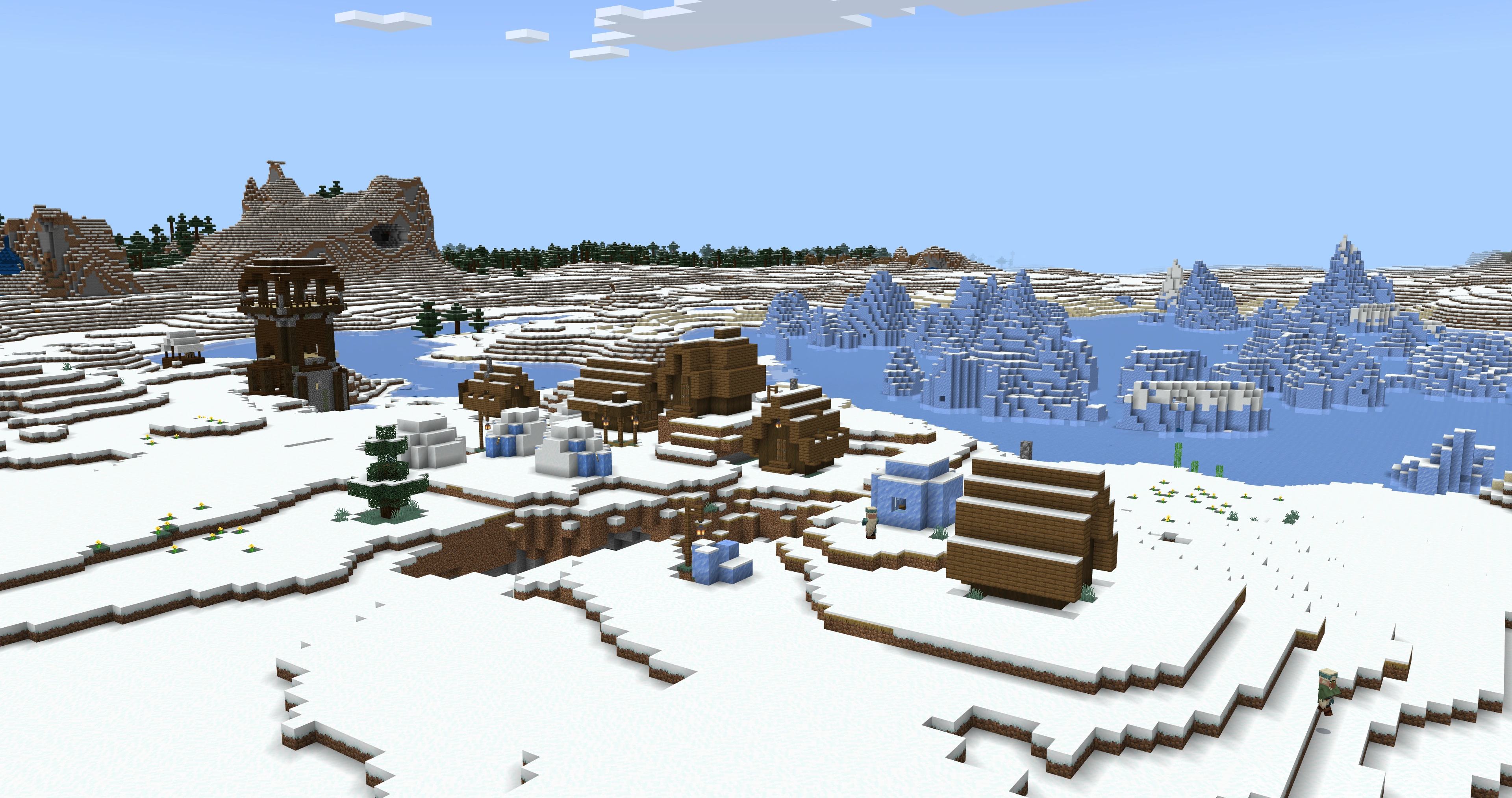 | 極寒タイガや雪のツンドラに村が生成されるようになった。この場合、タイガのようにマツを使った村になる。 | |||||