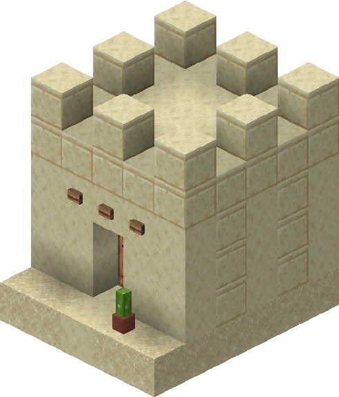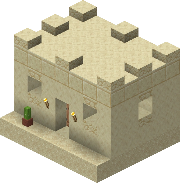 2台のベッドと焚き火が置かれ、大きな煙突が特徴の家。この家には村人が2人スポーンする。 | ||