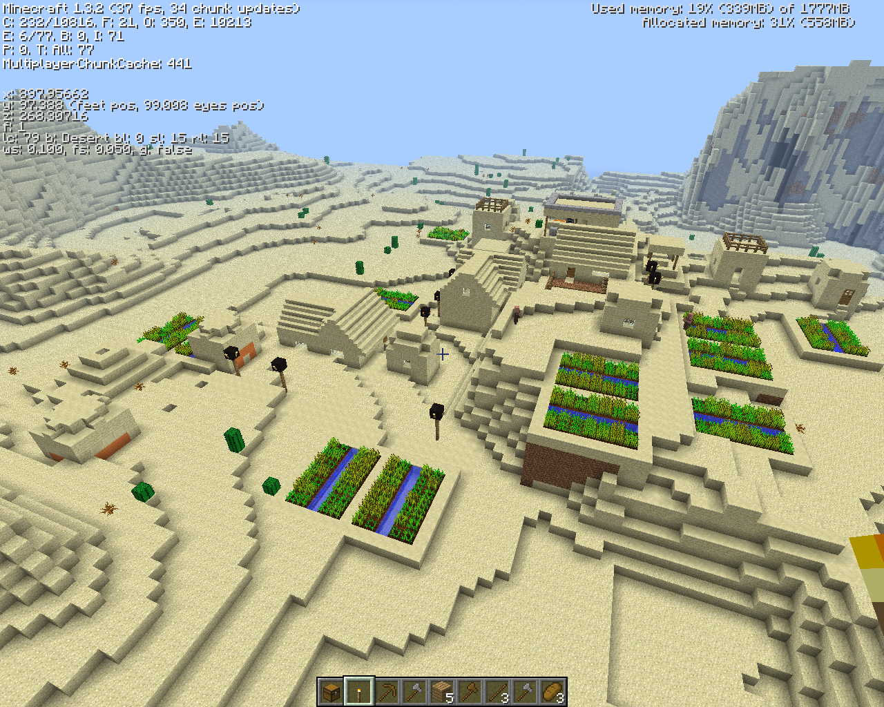 | 1.3.1 | 12w21a | 砂漠の村の建造物が砂岩で形成されるようになった。以前は木材と丸石が使用されていた。 | |||