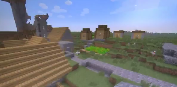 - 上とは逆に、村全体が道路よりも2ブロック高い場所に、家々への階段なしに生成されることが稀にある。