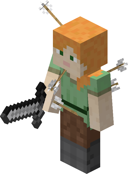| 矢を最適な角度で、最大の強さで弓から発射すると、最大120ブロックまで飛び、Mobを射ることができる。 | |||||