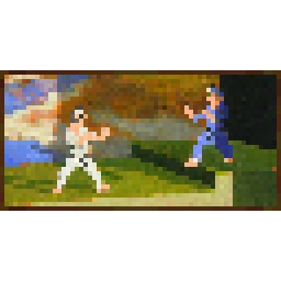 二人のピクセル化された男が対峙している。紙人形のような格闘家達は "International Karate+" からの引用。 | Indev |