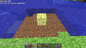 - ↑ a b June 19 IRC logs: "P6:40:29 <Gamerkough> New minecraft update is borked.", "P6:40:32 <wingboy> glass is updated" [...] "P6:42:47 <MANIA> wait, another update for sure?" [...] "P6:43:44 <MANIA> glass has been updated again?" [...] "P6:44:06 <Evil-Ville> Looks less like ice now" [...] "P6:46:09 <Evil-Ville> The new glass is better because it allows you to see through it properly" [...] "P7:39:33 <Senku> This glass texture still seems like it has too many lines on it" [...] "P7:39:45 <Notch> I'm very happy with how the glass texture ended up" (23:40 to 24:39 UTC)