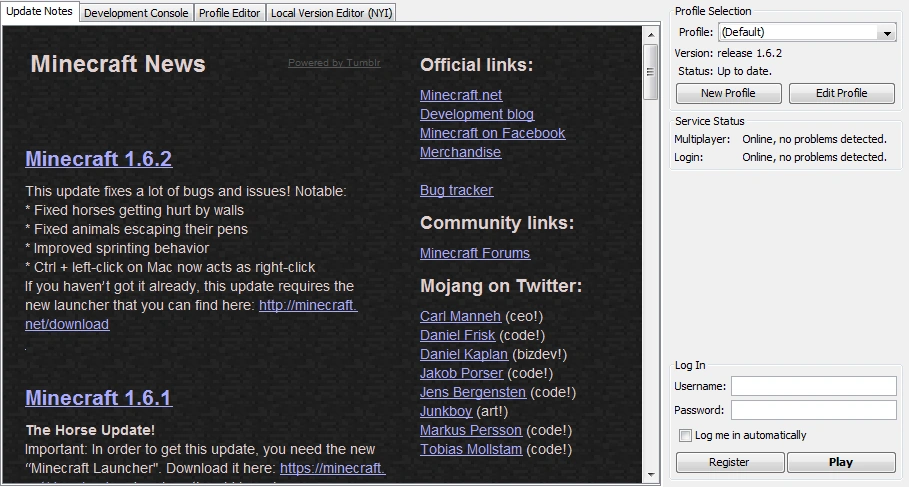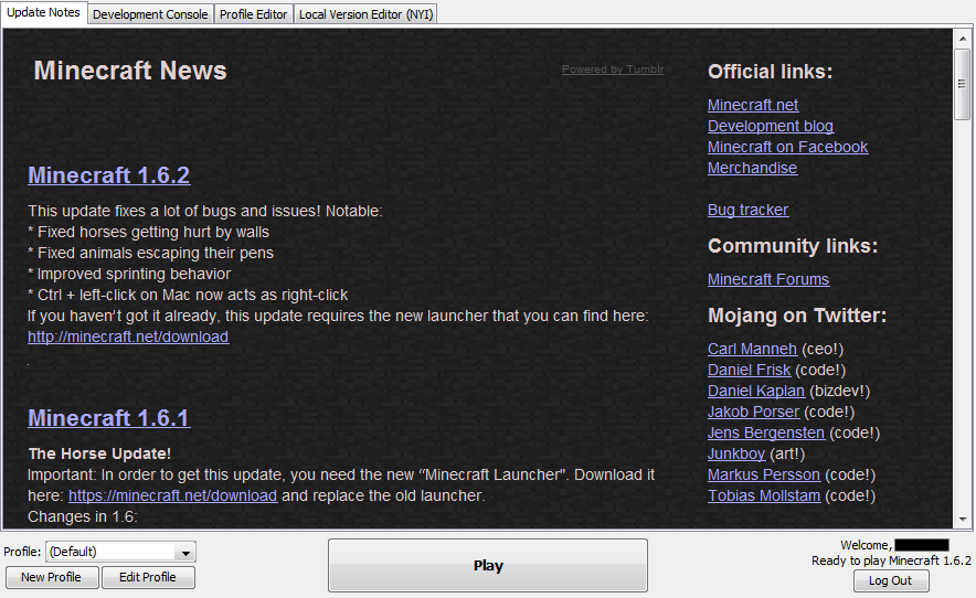 - Mac OS X 10.5.8ユーザーは、LWJGLの修正が行われるまでMinecraft 1.6.1を無効にしたが、1.5.2は影響を受けない[38]