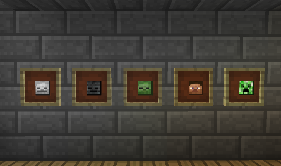プレイヤーの頭は "/give @p 397 1 3 {SkullOwner:プレイヤー名}" というコマンドを実行すると入手できる。これはMinecraftスキンサーバーからプレイヤーのスキンの頭のみを表示するようにできる。また1.7世代から正式採用となっている模様。