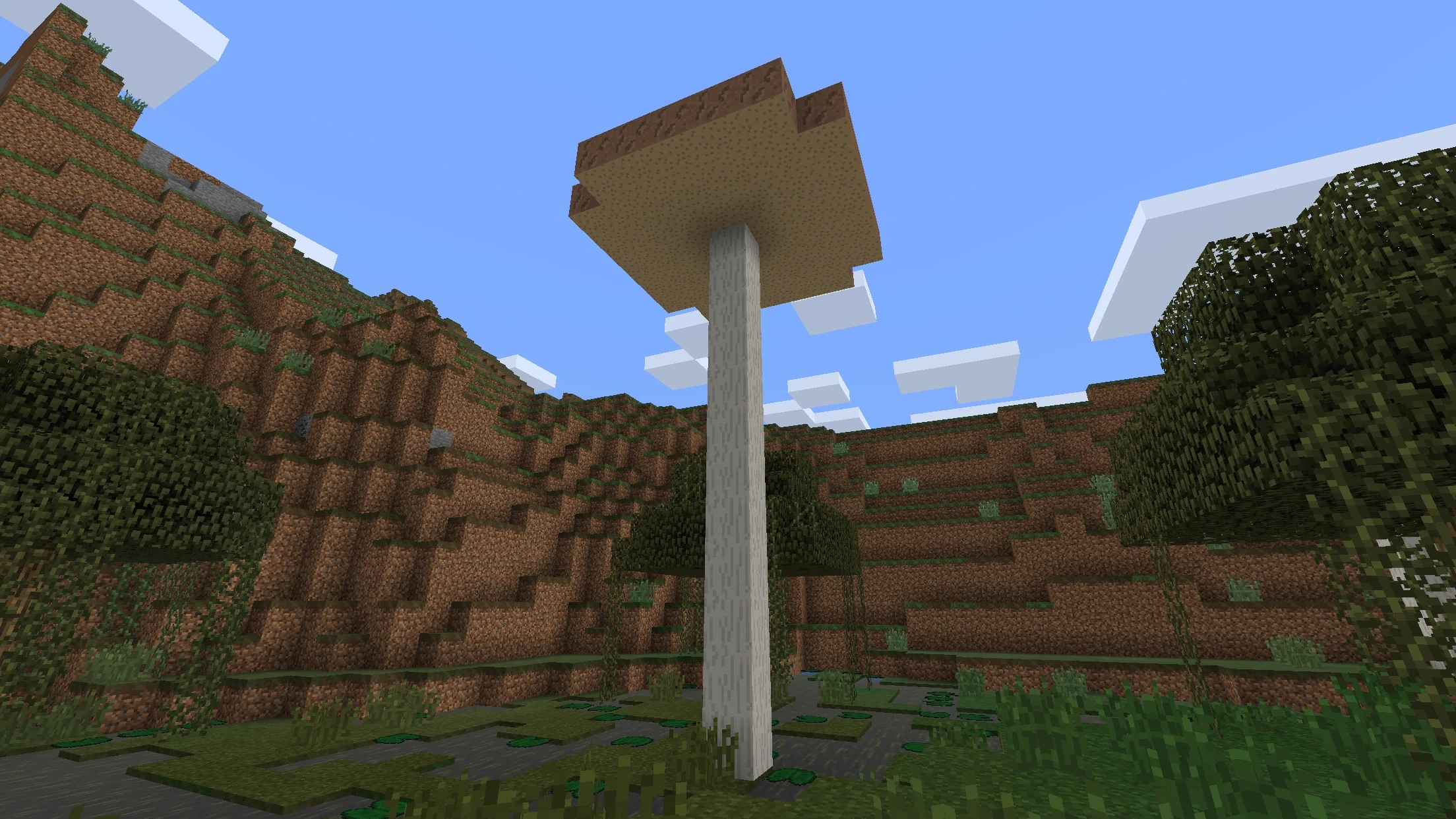 거대한 버섯은 중앙에 하나의 줄기로 이루어져 있으며, 꼭대기에는 모서리가 없는 갈색 버섯 블록의 7×7 캐노피(거대한 버섯의 덮개)가 있다.