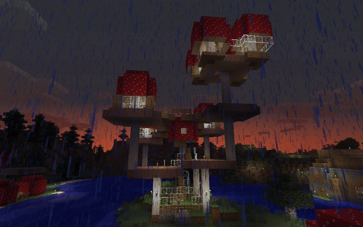 | This led people to believe that huge mushrooms would be added, and indeed, later on Notch revealed a screenshot on Google+ in which two huge mushrooms could be seen as well as a village. | |||||