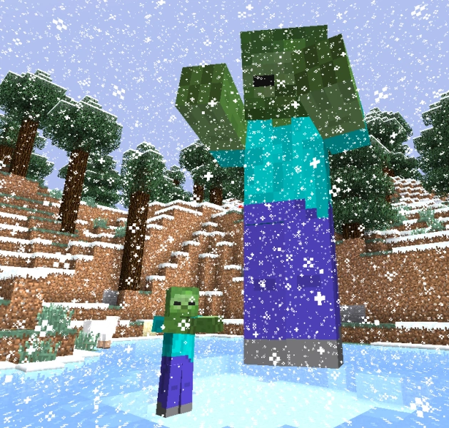 Giants use the same skin as zombies and yet show almost none of the same behaviors as them. One thing to bring the two closer would be their attack style, Giants attack by simply ramming the player over and over again as do zombies. It seems as though Giants do not spawn in groups and thus will not back each other up like wolves in the hostile state, or Zombie Pigmen when provoked.