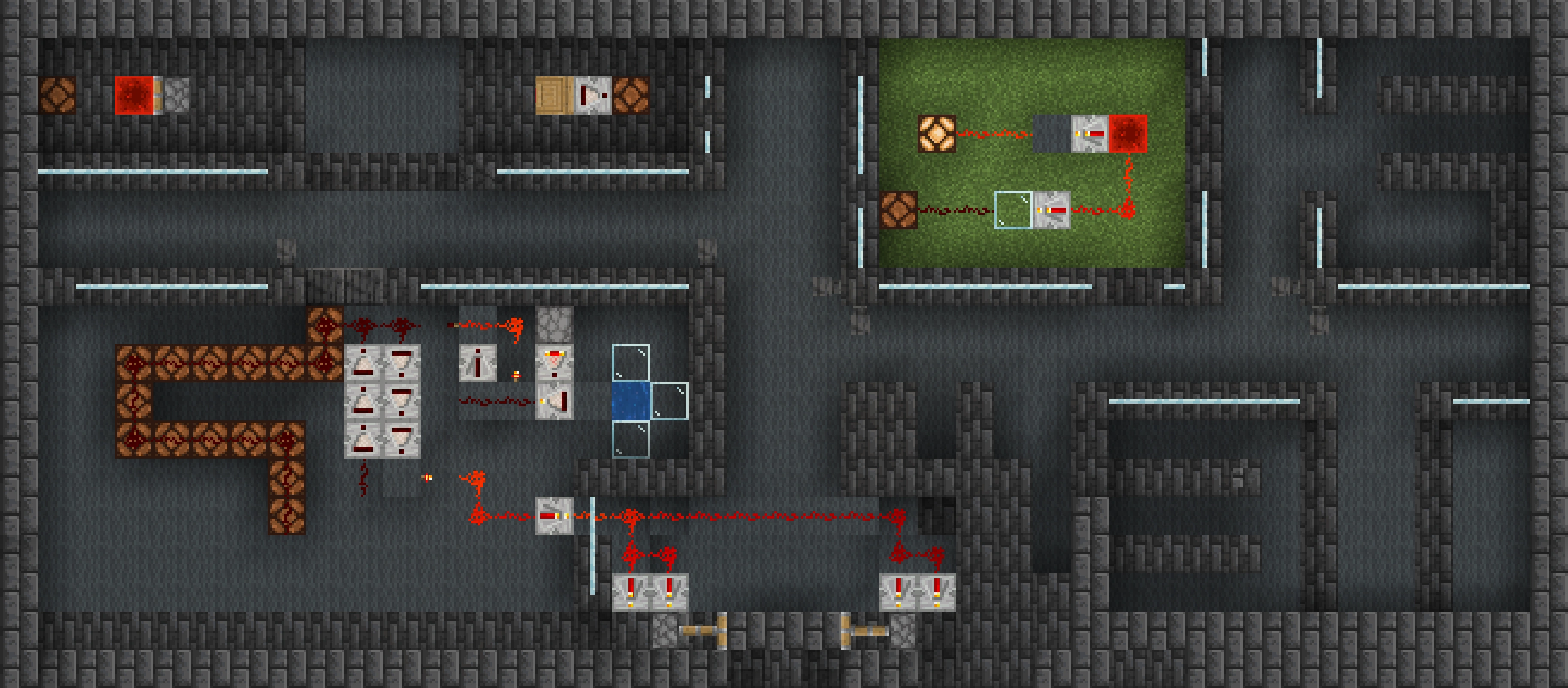 지하 밀실 안에는 3개의 간단한 레드스톤 회로가 설치돼 있다.
