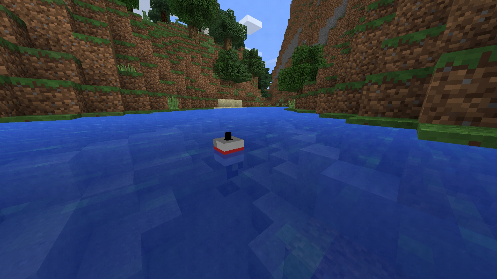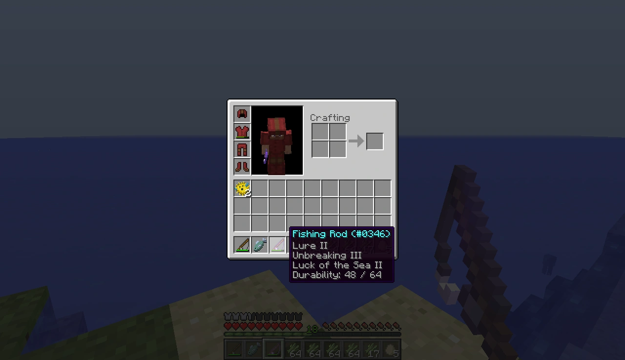 물속에서 낚싯대를 사용할 때 블록이 가로막거나 오징어와 같은 몹에 걸리지 않는 한 찌가 수면에 떠오른다.