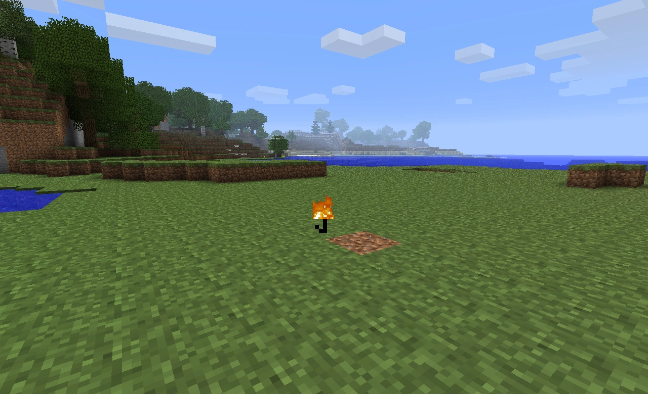 - 찌를 불에 던지면 찌가 불타서 불 블록에 붙어버린다.