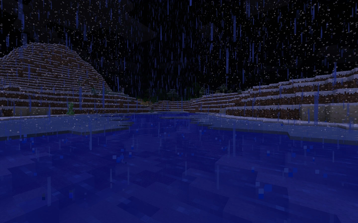 | v1.0.4 | Winter mode added. While generating a world, there is a 25% chance to get a snowy world, where snow falls continuously. This feature was eventually removed with the introduction of biomes. | ||||