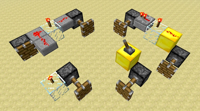- A piston has a stone "base" and a wooden "head", and can be placed so the head faces in any direction (its "front").