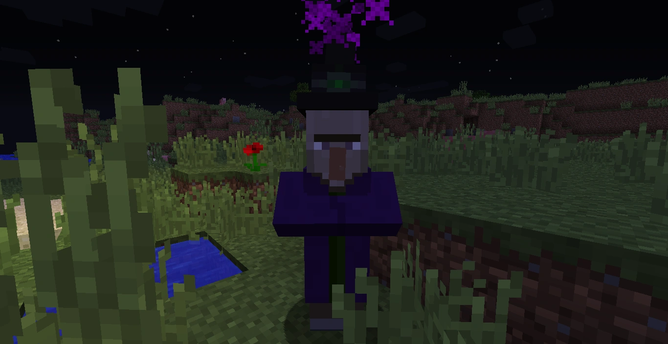 - ↑ “The cowl on the witch is not intended. The cowl was always in the texture map but it just wasn't rendered. Due to the new villager model system now it does.” – @JasperBoerstra, December 13, 2018