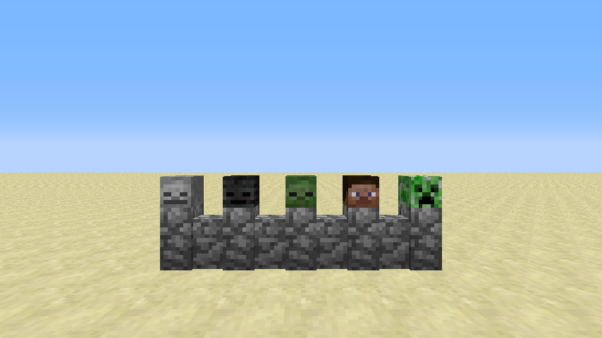 | 15w32a | Creeper, zombie, and skeleton heads can be worn to reduce detection by the corresponding mobs by 50%. | ||||
