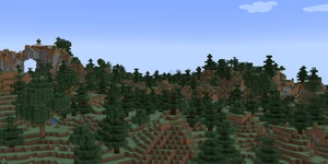 대부분 평평한 생물 군계로 가문비 나무 숲으로 덮혀 있다. 숲 속에는 고사리와 키가 큰 고사리가 많이 자란다. 늑대 무리와 작은 토끼 무리가 잘 발견된다. 이 생물 군계에는 주민이 생성될 수 있다. 주민들의 집은 가문비 나무로 지어져 있다.그리고 달콤한 열매 덤불이 많이 생성된다. |