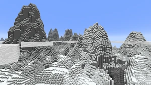 산 봉우리에서 형성되는 세 개의 생물 군계 중 하나이다. 들쭉날쭉한 봉우리가 높이 y=256까지 생성되어, 지나가는 구름에도 닿는다. 눈 블록이 쌓여있으며 밑의 돌 지형에는 석탄 광석, 철 광석, 에메랄드 광석이 박혀있다. 눈 덮인 비탈처럼 산의 일부 측면에서 돌 절벽이 생성되기도 한다. 이 곳에서는 몹이 유일하게 염소만 생성된다. |