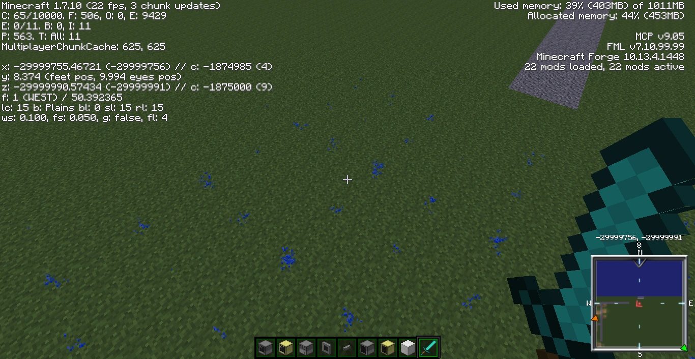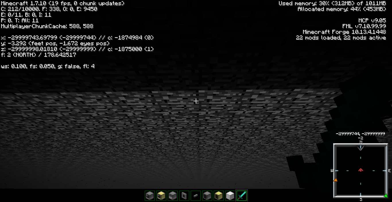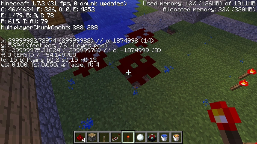 | The "fake chunks" now start at X/Z: 30,000,000, 2 million meters less than in Alpha v1.2.0 - Beta 1.7.3. | |||||