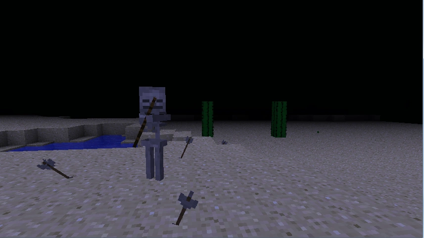 | 13w03a | Skeletons begin to fire rapidly at players who come within close range in an attempt to knock them back. This makes melee combat in water hard, if not impossible. | ||||