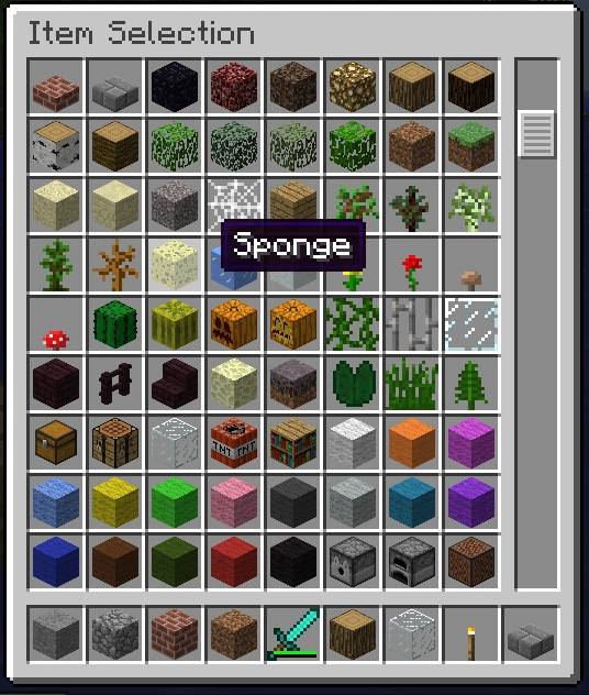 | 1.8 | Pre-release | Sponges become available in Creative mode. | |||
