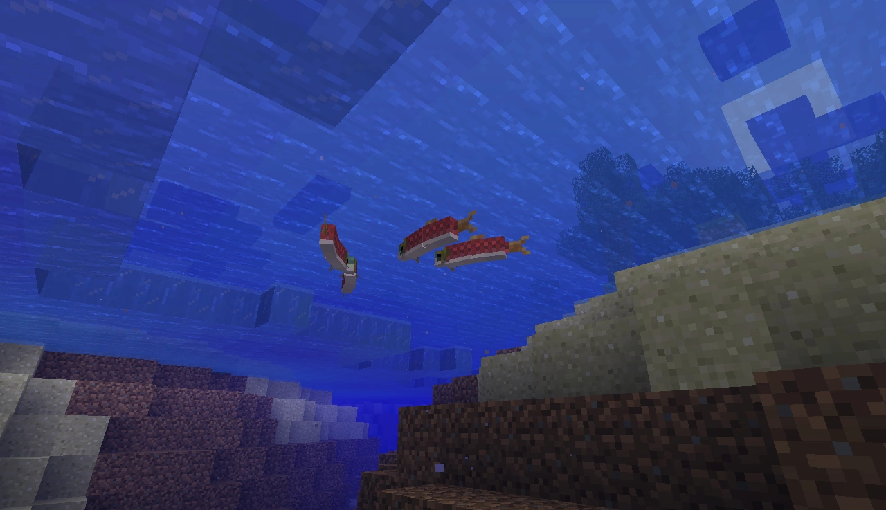 연어는 무리를 지어 헤엄치는 경향이 있다. (무리당 최대 6마리) 연어는 폭포에서 약 4-5블록까지 거슬러 올라간다.