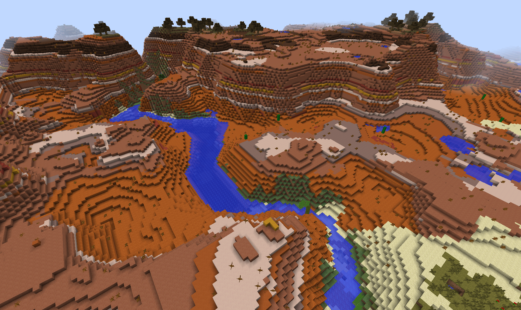 | Terrain generation is now independent from biomes, with biomes adapting to whatever terrain they happen to generate throughout. | |||||