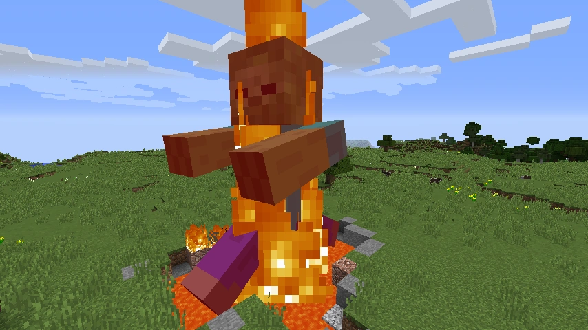 플레이어가 흐르는 용암을 통과해 화살을 쏘면 (정지한 용암은 안됨) 화살에 불이 붙는다.