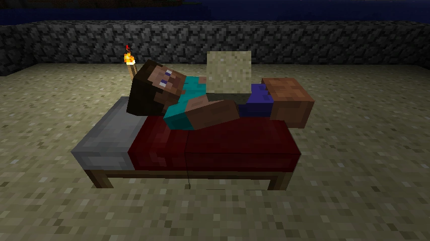 잠을 자는 동안에는 작물의 성장이나 제련은 정지된다. /gamerule doDaylightCycle 을 false로 설정할 경우 플레이어가 밤에 깨게 된다.