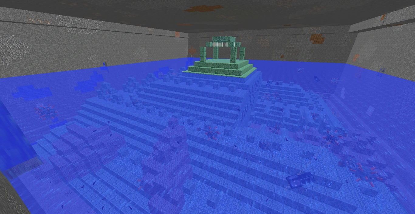 해저 유적은 여러 종류의 프리즈머린으로 지어지며, 조명은 바다 랜턴이다. 중앙에 큰 방이 있고 양쪽에 날개 건물이 있으며, 탑 아래에는 23개의 거대한 기둥이 있다. 주 입구는 중앙부의 정면에 있다. 해저 유적의 기본 크기는 62 x 62 블록이다.