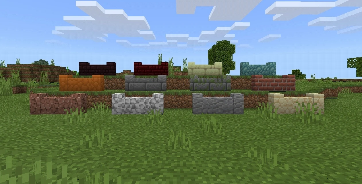 - 블록 바닥 및 위에 고정할 수 있으며, 담장에도 고정할 수 있다. 각각 텍스처가 다르다.