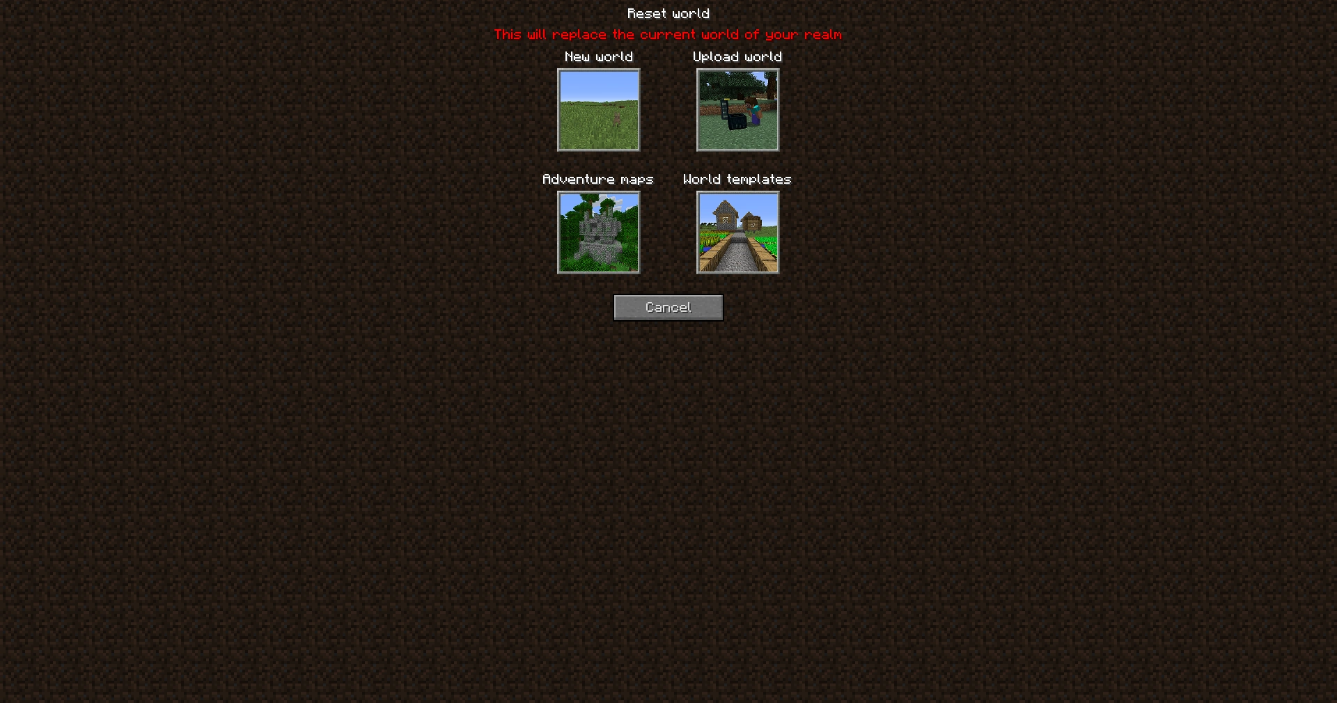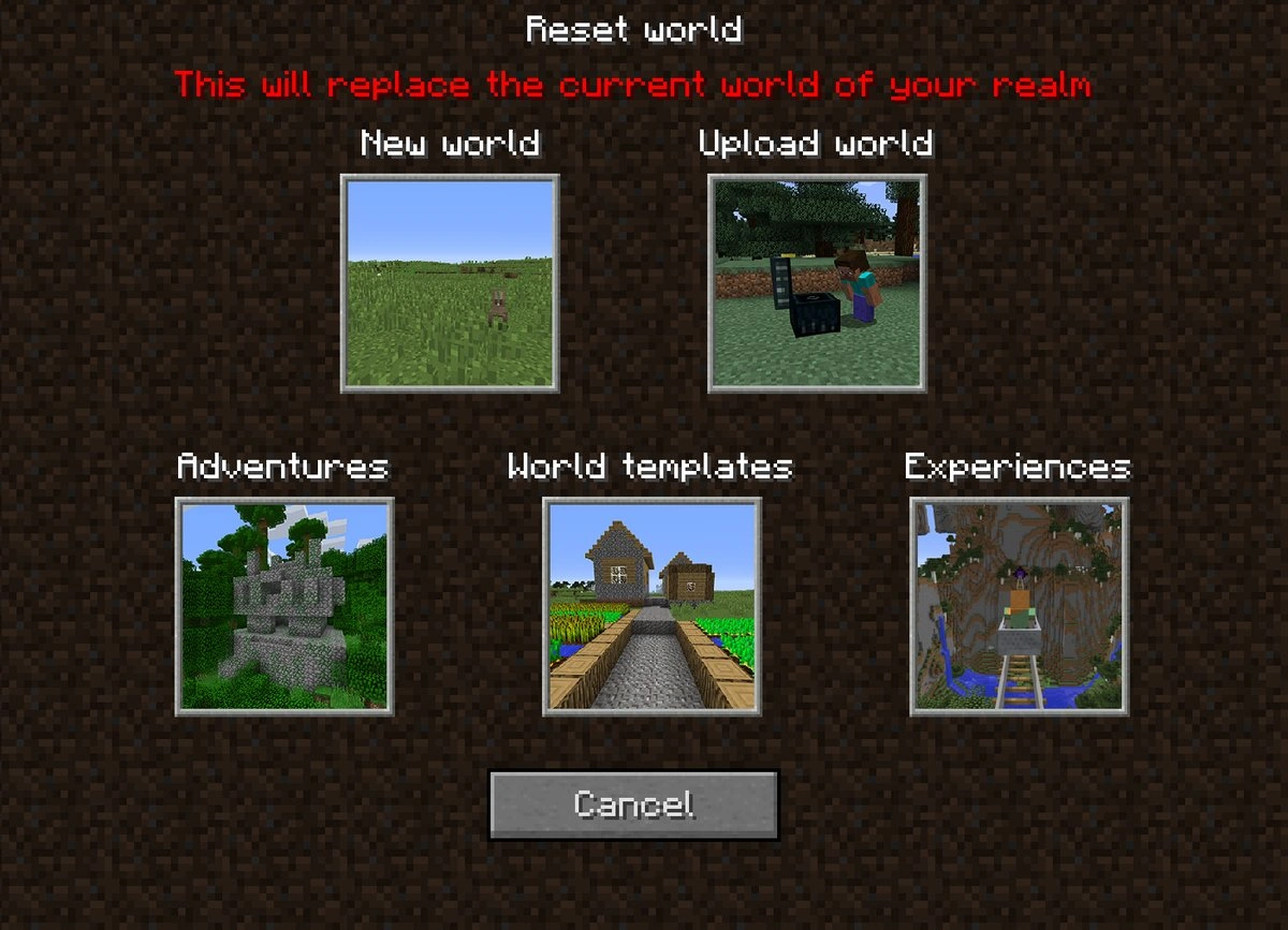 Java Edition Realms 서비스에서 사용자는 임시로 자신의 세계를 미니게임으로 교체하거나 영구적으로 자신의 세계를 세계 템플릿, 모험, 경험, 또는 영감(inspiration)과 같은 범주의 맵으로 변경할 수 있다. 또한, 당신의 Realm이 미니게임을 실행하고 있는 동안에는 대부분의 명령어 또는 옵션을 사용할 수 없게 된다. 이러한 맵들은 Realms 팀에 의해 커뮤니티 제안에서 선택되어 진다. 특정 맵들은 맵이 제거되거나 현재 업데이트와 호환되지 않아서 Realms에서 사용하지 못할 수 있다. 이러한 맵들은 Minecraft Java Edition에서만 사용할 수 있다.