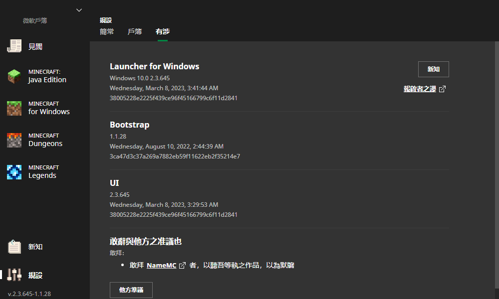 | 礦藝啟者與礦藝地下城啟者之版次 | |||||||||||||||||||||||||||||||