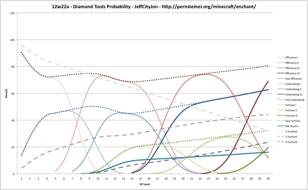 A bunch of charts on the probabilities of different enchantments here.