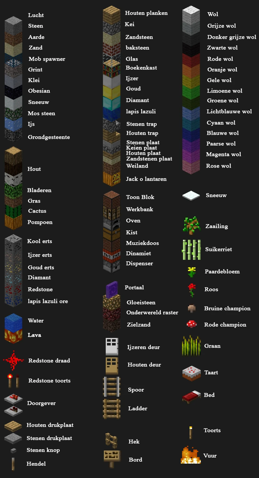Minecraft is samengesteld en volledig gebouwd uit blokken. Je graaft door blokken, je bouwt met blokken, je personage is gemaakt van blokken, kortom; Ze zijn overal! Het is mogelijk het uiterlijk van de blokken te veranderen door te gebruiken.