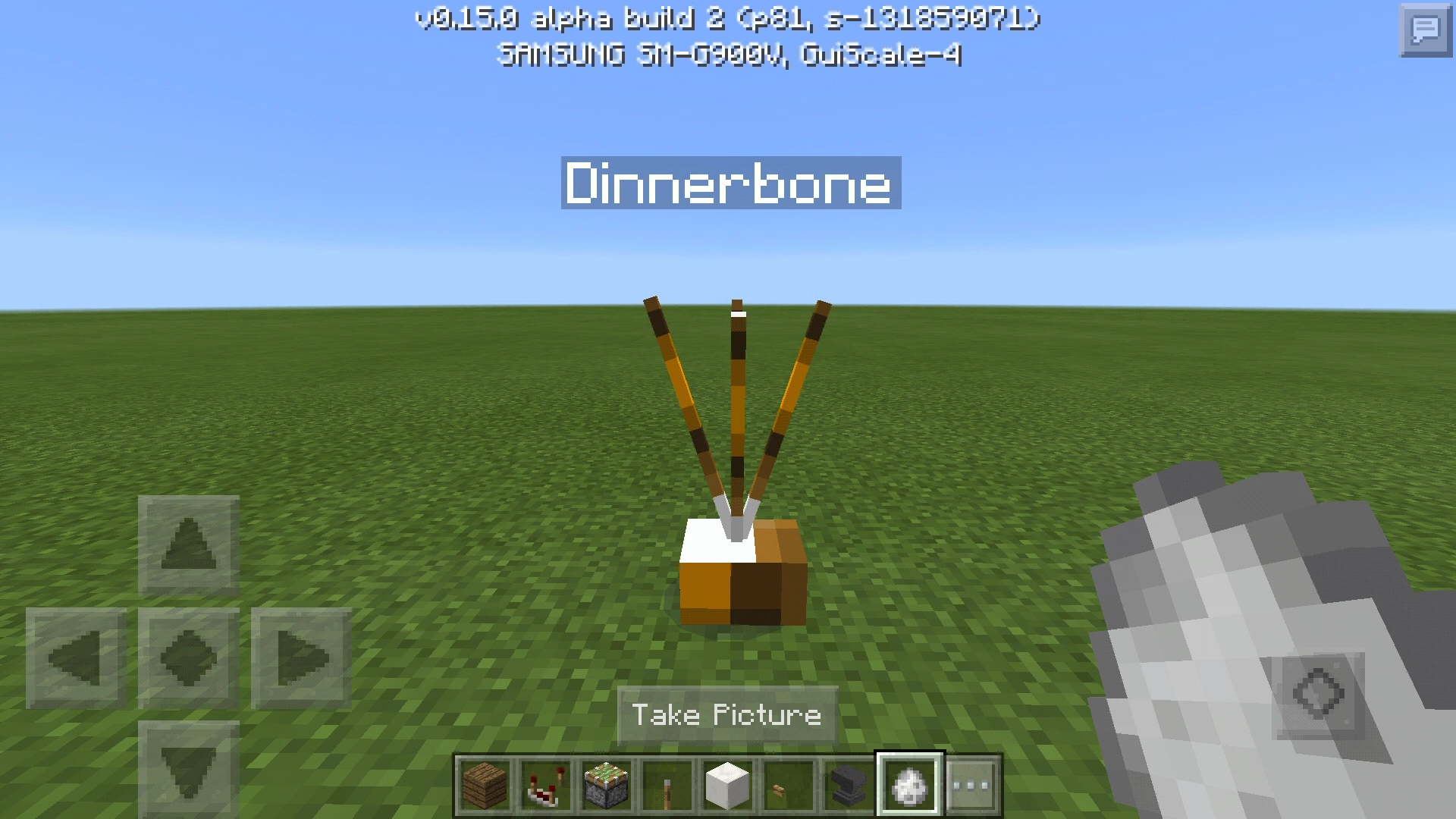 | According to the language files of MCPE, the empty label that shows up whenever hovering a finger to a camera would now say "Take Picture". However, the button doesn't do anything. | ||||