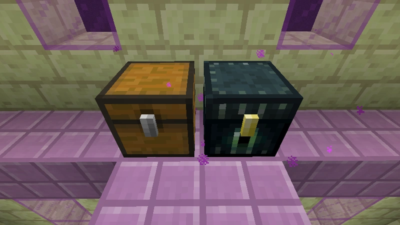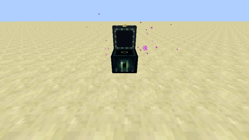 - De partikels van een Enderkist komen alleen voor in een radius van één om de Enderkist, dus als de Enderkist tegen een muur is geplaatst zijn de partikels niet zichtbaar aan de andere kant.