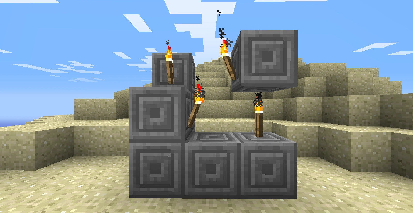 Blokken die worden beïnvloed door zwaartekracht, zoals zand en grind zullen niet naar beneden vallen als het blok eronder een fakkel is en zullen vallen als ze op de fakkel vallen.