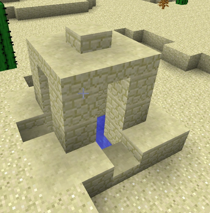 Woestijnbronnen werden geïntroduceerd in 1.2.1 en worden gemaakt van zandsteenblokken en -platen en komen alleen voor in de woestijn, vandaar de naam. Ook al hebben ze de naam 'woestijnbronnen', hun functie is nog steeds onduidelijk. Ze kunnen gebruikt worden om een emmer te vullen met water, omdat het middelste waterblok oneindig is. Ze hebben een kans van 1 op de 1000 om te worden gegenereerd in een woestijnchunk wat ze dus zeldzaam maken. Het is voor een bron mogelijk om naast een cactus te genereren.
