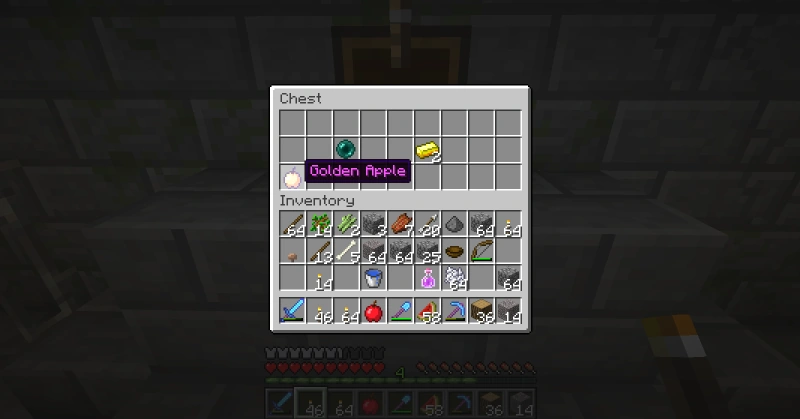 | Normale gouden appels kunnen worden gevonden in woestijntempels en verlaten mijnschachten. | ||||
