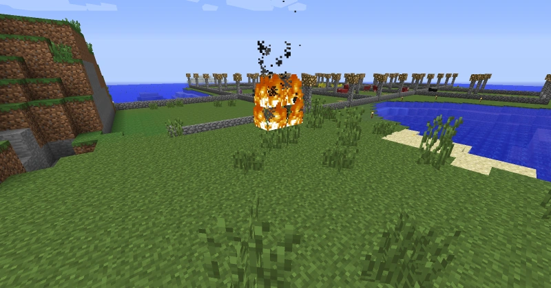 - Hoog gras kan niet direct in brand worden gestoken door de bliksem. Vuur van dichtbijzijnde blokken kan echter wél naar hoog gras verspreiden. Het vreemde van dit is dat het bovenste deel wel in brand kan worden gestoken, maar het brand niet op deze manier. Als elke soort hoog gras in brand is gezet, lijkt het alsof ht vuur net over het gras heen te gaan, alsof het een volledig blok is.