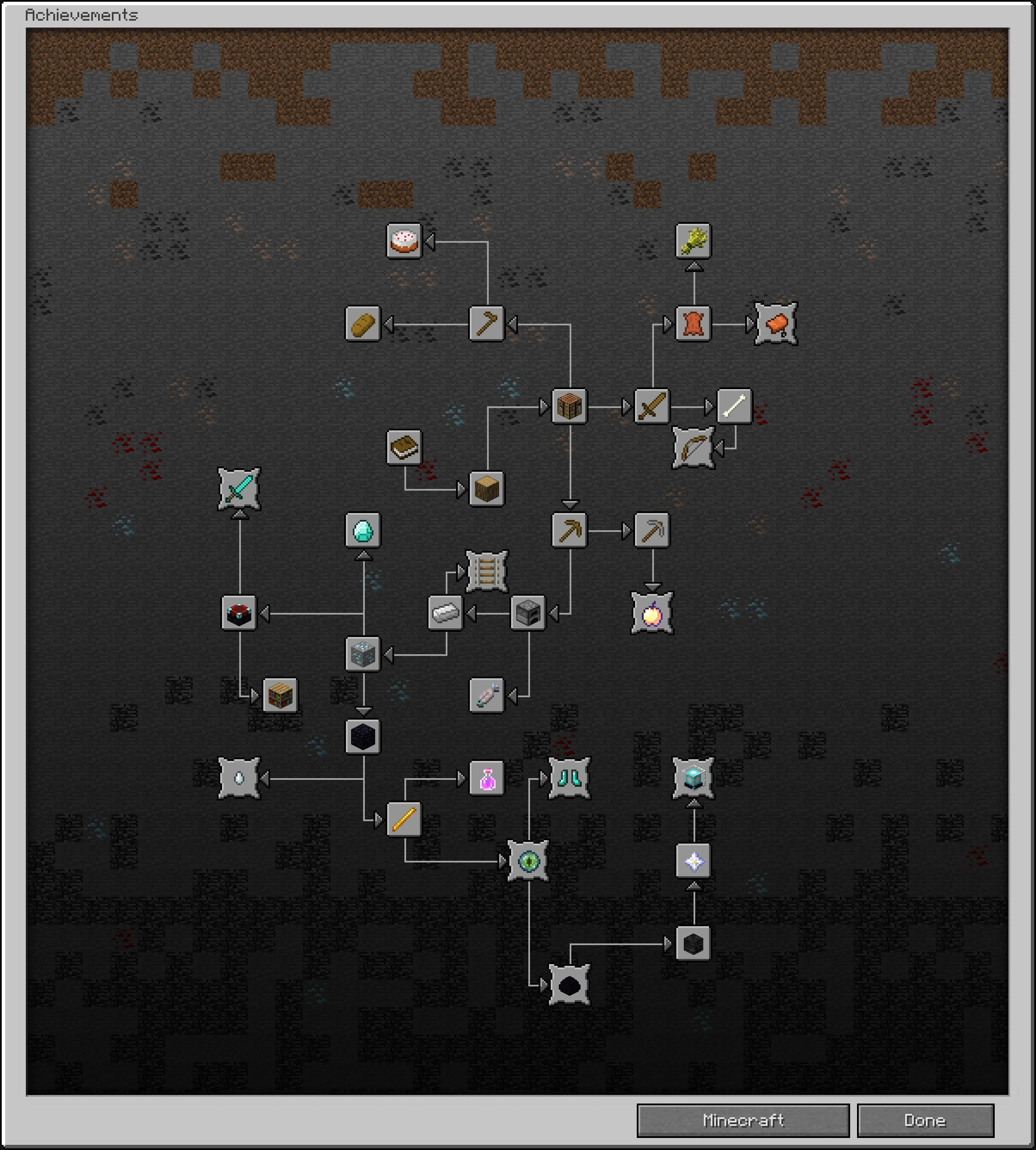 | Het begin. | Dood de Wither. | Wees binnen een kubus van 100,9×100,9×203,5 blokken gecentreerd op de Wither wanneer deze een Netherster laat vallen. | Ja | Ja | Ja | Ja | 40G | Zilver | |