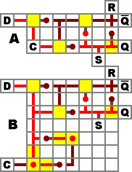 Zoals je ziet is design B een simpele omkeer van een NOR gate.