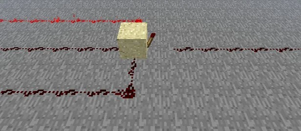- Redstone draad geeft lading aan blokken die alleen horizontaal aanpalend zijn aan het einde van de draad.