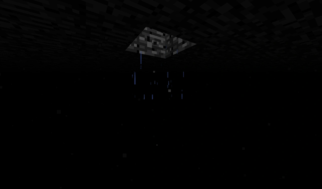 - Rain actually falls one block into the void (Layer -1). This can be achieved by digging a vertical shaft down in Creative mode, removing the bottom layers of Bedrock and floating inside the Void (in flying mode). Note that no particles are emitted from the rain, due to the absence of a block below it.